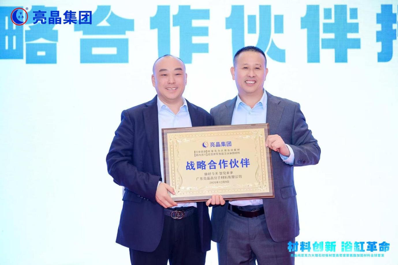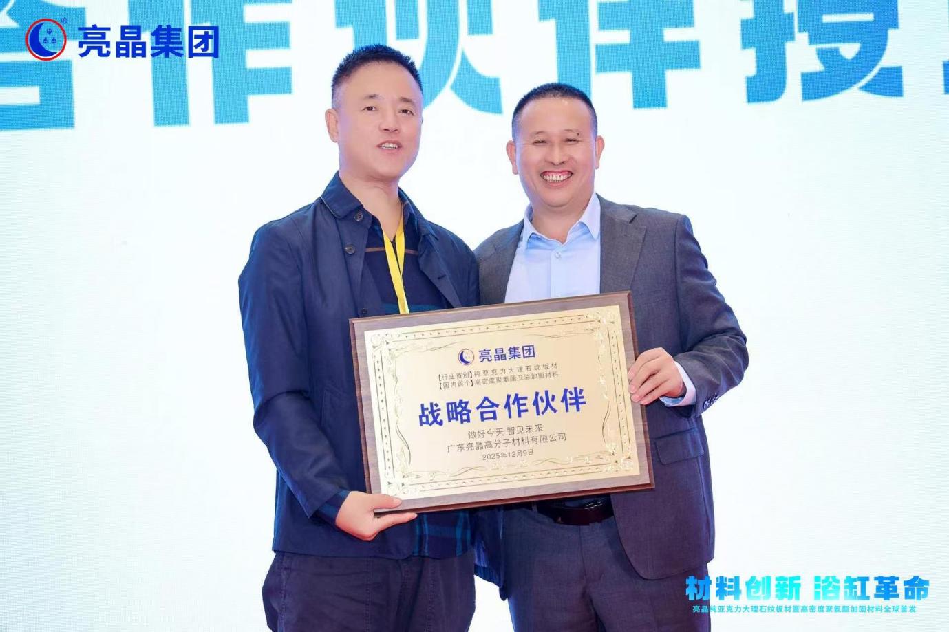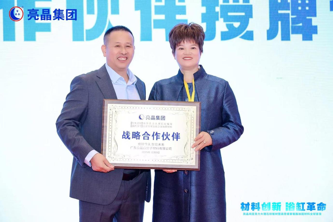 最后,活动在授牌仪式后顺利落下帷幕。亮晶董事长为战略合作伙伴颁发的牌匾,既是携手共进的承诺,也是助力企业破除内卷,开辟市场新蓝海的一把钥匙。未来,亮晶将继续以技术创新为核心驱动力,推出更多满足行业转型升级需求的创新产品,与全球合作伙伴携手,共同推动卫浴行业向高品质、绿色化方向发展!