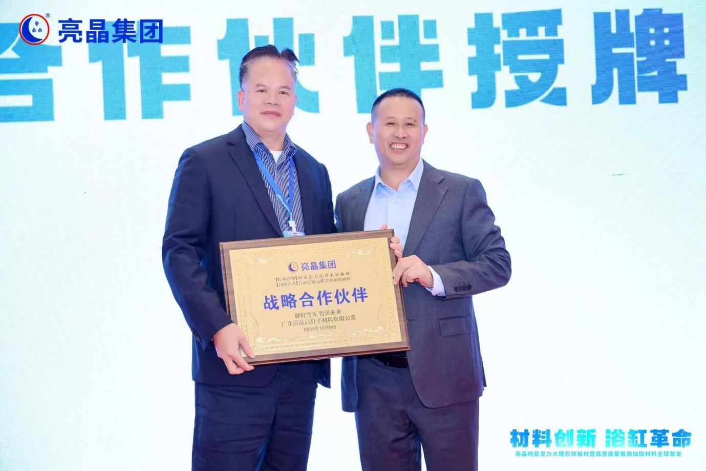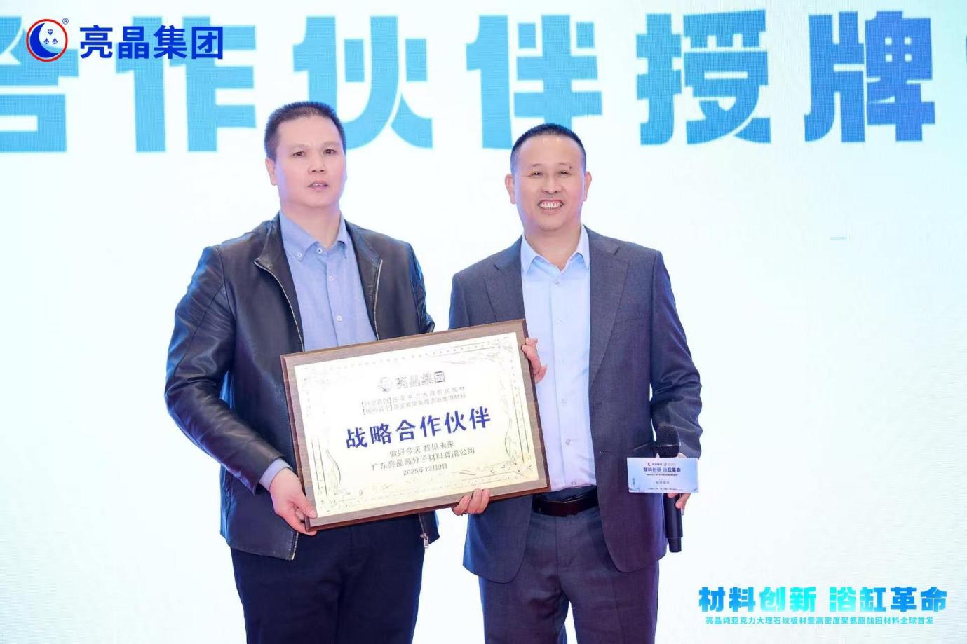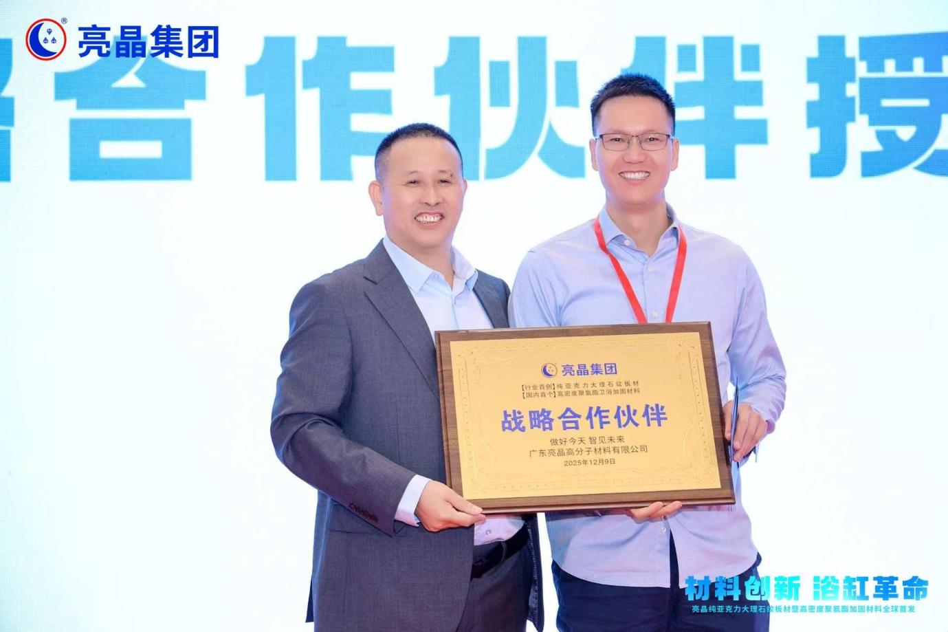 最后,活动在授牌仪式后顺利落下帷幕。亮晶董事长为战略合作伙伴颁发的牌匾,既是携手共进的承诺,也是助力企业破除内卷,开辟市场新蓝海的一把钥匙。未来,亮晶将继续以技术创新为核心驱动力,推出更多满足行业转型升级需求的创新产品,与全球合作伙伴携手,共同推动卫浴行业向高品质、绿色化方向发展!