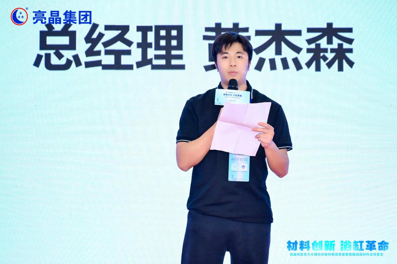 值得一提的是,在本次发布会前,已经有部分企业提前与亮晶合作,并使用了这两大新材料生产浴缸。在此次发布会上,佛山市高明粤华卫生洁具有限公司总经理黄杰森、四川贝加特卫浴有限公司总经理钟天刚、广东西沃卫浴科技有限公司总经理钟志龙相继上台,对自己与亮晶的合作进行分享。