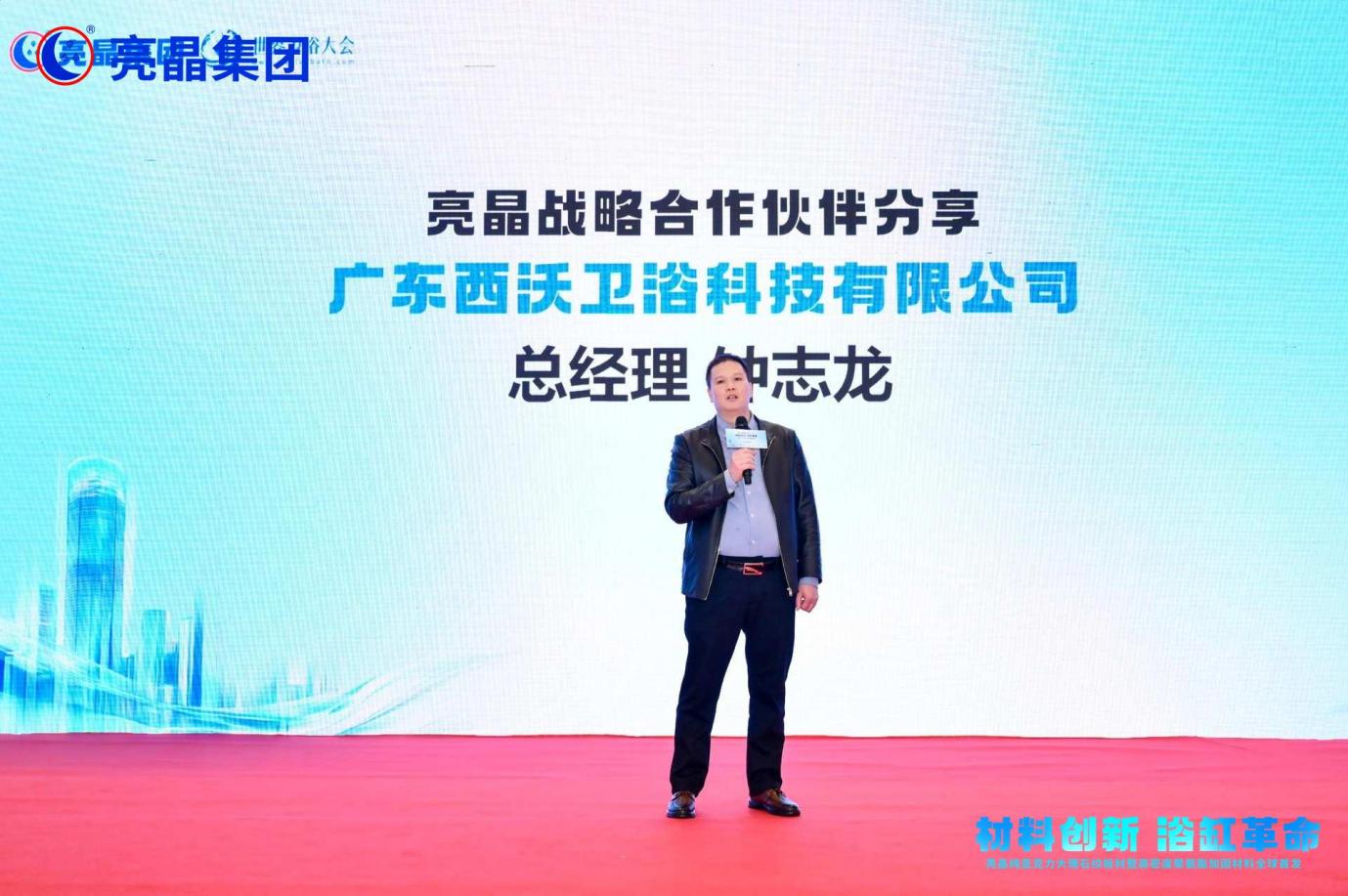 广东省卫浴商会秘书长张书儒,则站在行业高度,肯定了亮晶在卫浴材料领域的深耕与贡献,并展望了新材料对行业发展的积极影响。他表示,新材料的突破,必将助推行业进步。同时,随着时代发展,会有越来越多的人开始放慢脚步、享受生活,在这种情况下,浴缸产品将迎来新的发展契机。