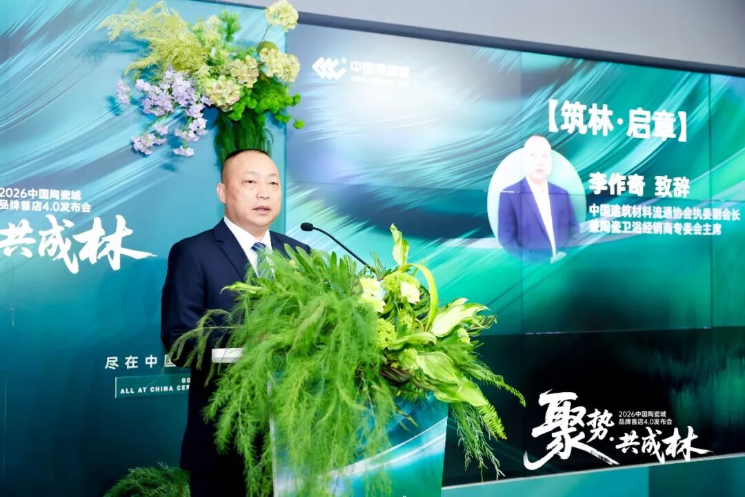 中国建筑材料流通协会执委副会长兼陶瓷卫浴经销商专委会主席 李作奇在致辞中强调,在当前严峻的市场环境下,产品个性化定制与品牌全球化布局已成为企业突围的两大核心路径。中国陶瓷城凭借20余年的行业积淀,已成为众多企业拓展海外市场的重要依托。如今,中国陶瓷城的平台价值正在不断延伸——从最初的陶瓷卫浴出海窗口,逐步拓展为涵盖门窗、定制家居等多个品类的泛家居建材出海服务平台。李作奇表示,期待未来中国陶瓷城继续发挥平台优势,为更多泛家居企业的全球化之路保驾护航。