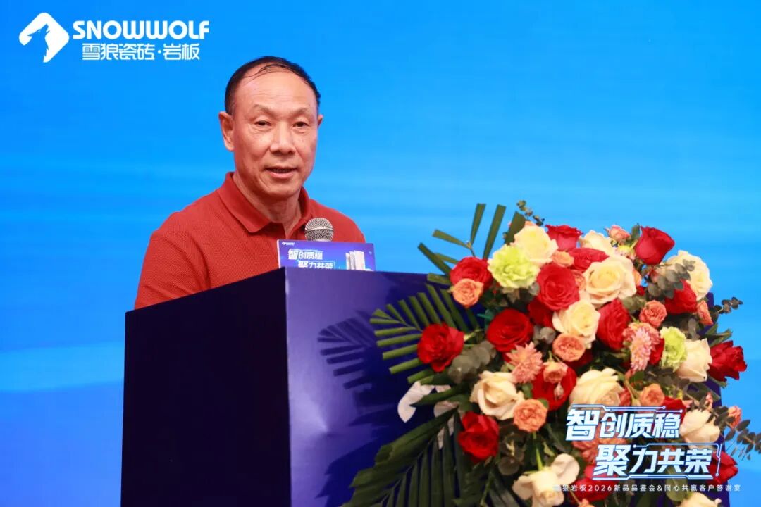 雪狼岩板董事长蔡丰安先生在晚宴致辞中重申,“品质稳定”是雪狼22年如一日坚守的源头工厂底气。然而,坚守并非固步自封,真正的“新质生产力”要求企业不仅要“质稳”,更要“智创”。