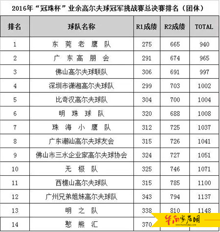 经过了两天激烈的角逐,总决赛成绩在万众期待下终于出炉。 东莞老鹰队获得第一名、广东高朋会获得第二名、佛山高尔夫球联队获得第三名。