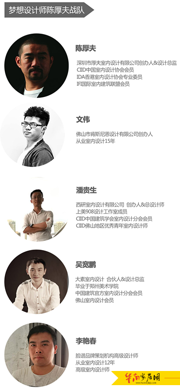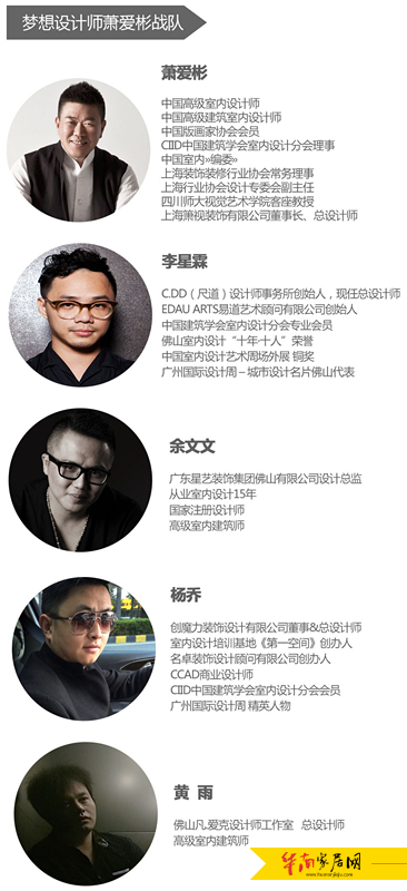 形式概述:活动形式采用“团队竞技的方式”,由梦想导师萧爱彬与陈厚夫分别各自带领四个本土设计师形成自己的战队,面对真实业主提出的诉求,出具方案,生发设计论战,最终现场投票表决与业主表决。
