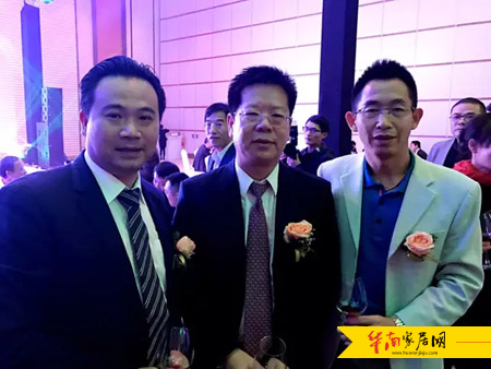 花样年集团总裁刘宗保(中)与冠珠品牌总经理邓勇(左)深圳华慈冠珠总经理黄建(右)合影