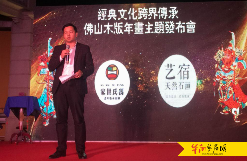 艺宿天然石画品牌创始人、总经理晏奔应邀在发布上致辞,晏总介绍,艺宿是一家有文化追求并拥有多年专业经验积淀的建材制造企业,艺宿是“让艺术找到归宿”之意,艺宿致力打造艺术范的工厂和产品,佛山木版年画提供很好的灵感与特色元素,以帮助塑造更富有蕴味与设计感的人文空间。传统的制造业不但在技术上要革新,更要融入更多的文化与设计,以满足市场的需求,双方合作将在春节后深入展开。