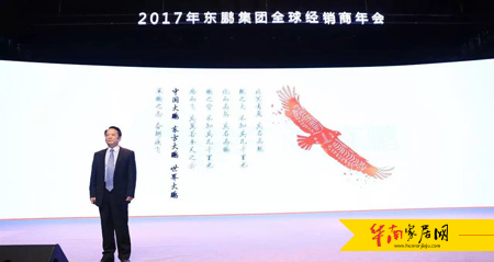 2017年,他希望每一位经销商都能够跟着东鹏一起,不忘初心,以始为终。牢记打造世界级的陶瓷品牌的梦想,通过组织内部的加速变革,为2017年的业绩腾飞注入新的动力。