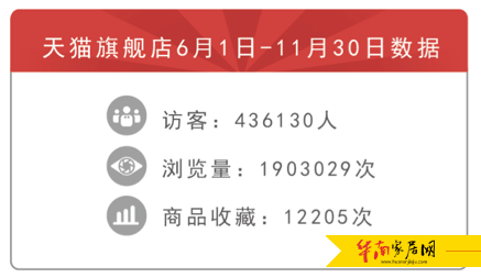 依诺瓷砖在2016年5月才正式进驻天猫商城,稳打稳扎地走出一条属于自己的独特道路。据透露,6月1日-11月30日期间,依诺天猫旗舰店访客436130人、浏览量达到1903029人次,商品收藏12205次;