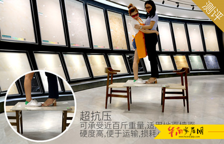为测试金刚微晶釉芙蓉玉脂TG8T008系列产品的抗压性,测评人员将金刚微晶釉芙蓉玉脂TG8T008系列产品放于两把椅子之间,两人在瓷砖上站立十分钟,十分钟过后、换下批人测试……经过反复测试,真材实料烧制金刚微晶釉芙蓉玉脂TG8T008系列产品无任何被破坏的迹象,此产品有极强的抗压性,这在搬运、加工时减少了损耗。产品十分耐用,属优质产品。