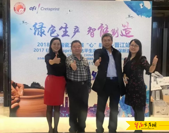 (华南家居网讯)2017年11月30日,由中国贸促会建材分会、EFI快达平、中国建筑卫生陶瓷协会、福建省陶瓷行业协会、厦门俽旺进出口有限公司联合主办的“绿色生产,智能制造”主题大会成功召开。本次会议邀请到中国贸促会建材分会副会长周治洲,中国建筑卫生陶瓷协会副秘书长徐波,中国建筑卫生陶瓷协会副秘书长、华南理工大学博士尹虹,中国建筑卫生陶瓷协会机械环保节能分会执行理事长兼秘书长、景德镇陶瓷大学教授张柏清,福建省陶瓷行业协会执行会长吴声团,福建省陶瓷行业协会秘书长叶少芬,EFI快达平全球销售总监Emilo埃米里奥,EFI工业打印亚太区总经理李茉莉,厦门俽旺进出口有限公司总经理赖朝旺、副总经理杜振福、陈光辉及福建产区行业优秀代表。