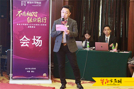 2017年,是在陶瓷行业改革的关键之年,陶瓷生产成本大幅上涨,产业调整浪潮席卷全国,家居空间风格现代化更新,陶瓷产品一步步往个性化生产。2017年,蒙地卡罗人夯实基础,脚踏实地将困难逐一攻破。在会议开始之前,用一段视频回顾了这一年的付出与收获
