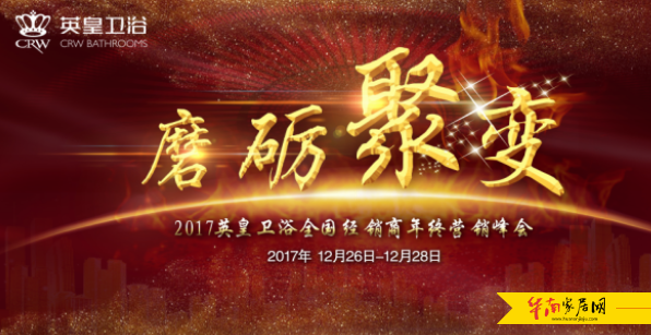 (华南家居网讯)鸡鸣盛世山河溢彩,狗吠升平岁月流金。在这辞旧迎新之际,2017英皇卫浴全国经销商营销峰会将于12月26日- 28日在佛山举行。本次峰会活动以“磨砺·聚变”为主题,届时,来自全国各地的近200名VIP经销商、行业资深人士及嘉宾,以及近30家媒体代表,汇聚英皇卫浴总部,欢聚一堂,共享营销峰会。