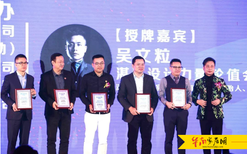 湛江设计力量轮值会长吴文粒分别为广东联结电子商务有限公司、广州金坊建筑材料有限公司、海口喜盈门经营管理有限公司、深圳市中航盈富投资控股有限公司、深圳思莱斯软装公司授予年会联合承办单位荣誉