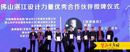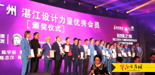 湛江设计力量轮值会长陈南珠、总监事长陈伟文、监事黄后钦分别为CIID设计师材料网、伊莎莱窗帘、广州世荣电子股份有限公司、广东色彩大师建材有限公司、玛格全屋定制/ 广东楼宝建材科技有限公司、广东福和盛控股、广东雷特斯建材科技有限公司、紫禁尚品国际装饰、博德精工磁砖、海南睿达机电设备有限公司、蓝天豚硅藻泥广东运营中心、知本家、西普仕、欧模网授予年会联合协办单位荣誉。