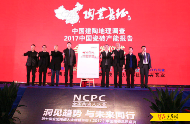 此外,由“陶业长征IV——2017中国瓷砖产能调查”成果汇编成的《中国建陶地理调查/2017中国瓷砖产能报告》也在本次大会上首发。中国建筑卫生陶瓷协会常务副会长缪斌、广东宏宇集团副总经理欧家瑞、陶瓷信息报社社长欧阳天生、九方瓦业董事长杨光中、美嘉科技副总经理陆永华、一鼎科技董事/营销总监周杰、德力泰科技国内销售总监戴跃飞共同为《中国建陶地理调查/2017全国瓷砖产能报告》的全球首发揭幕。