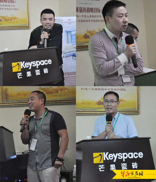 活动中,芒果瓷砖还特别邀请了营销及销售金牌讲师胡天墨老师,他不仅针对行业发展趋势做分析,还指导经销商如何谋势发展,在当下低迷动荡的市场下进行蜕变:“进入状态,做到极致,由虚到实的发展,落地,达成!”他还指出芒果品牌一直在走专业化、差异化路线,以产品作为载体,从虚的营销策略落地到实的市场收益,积极迎合市场变化,并作出了芒果模式是未来发展趋势的高度评价。
