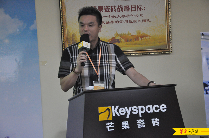 芒果瓷砖副经理兼销售总监银鹤喜先生针对产品未来竞争格局与趋势进行了主题演讲。银总结合庄园和田园两大品类产品,从终端运营系统(1+N+N模式)、专业渠道拓展、优秀团队建设等多方面解读了芒果品牌,并坚定而生动的阐述了芒果模式是未来发展趋势,势必将芒果瓷砖打造成中国田园生活方式领导性品牌。