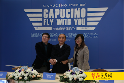 作为家居行业首家登陆南航机载电视广告的瓷砖品牌,卡布奇诺与南方航空的合作引起众多媒体的采访报道,华南家居网、华人设计师网、陶城报、陶瓷信息等近20家媒体共同见证本次签约仪式。