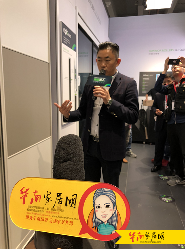 许超亲自向佳宾和媒体介绍欧派克智能新品——磁悬浮滑轮系统
