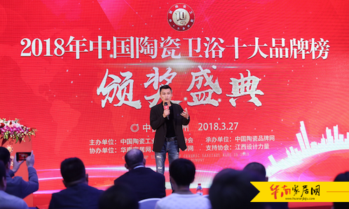 (华南家居网报道)3月27日,由中国陶瓷工业协会营销分会主办,中国陶瓷品牌网、华人设计师网共同承办的2018年度中国陶瓷卫浴十大品牌榜颁奖盛典在G20峰会会场杭州国际博览中心隆重举行。经由报名、投票评选等环节持续了将近半年时间的中国陶瓷卫浴十大品牌榜终于揭晓。中国陶瓷工业协会营销分会专职副会长于枫;中国陶瓷工业协会营销分会常务副秘书长姜崇;东亚智库首席经济学家,国家发改委产业经济与技术经济研究所客座研究员、北京东亚汇智经济咨询中心主任李继凯教授;江西设计力量执行会长、尚层壹亿创始人叶森林;江西设计力量无锡分会会长、江苏布艺布舍软装设计创始人杨帆;中国陶瓷品牌网执行董事总经理杨钧;华人设计网主编、江西设计力量秘书长焉莫;以及来自全国各地的家居建材企业家、设计师、经销商和各界媒体朋友一同出席颁奖盛典。