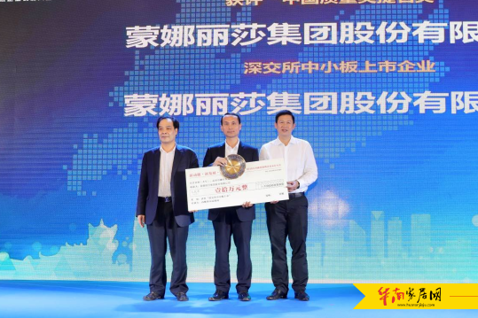 2017年度,蒙娜丽莎公司成绩卓著,不仅获得了上级政府授予的全国“隐形冠军”、“佛山市细分行业龙头企业”等光荣称号,更于2017年12月19日成功在深圳交易所挂牌上市,一如既往地对本地经济的发展作出了突出贡献。因此,西樵镇政府再度授予蒙娜丽莎“年度纳税大户”光荣称号,更对蒙娜丽莎2017年度作出的成绩予以奖金奖励。