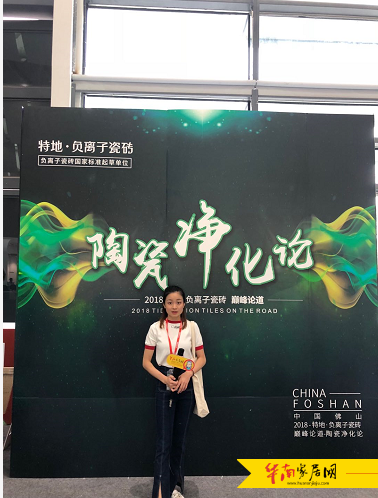 佛山市陶瓷学会秘书长黄宾致辞,她表示,负离子瓷砖是建筑陶瓷的新品类、新创新,由于其环保健康功能,极受企业及消费者的青睐。