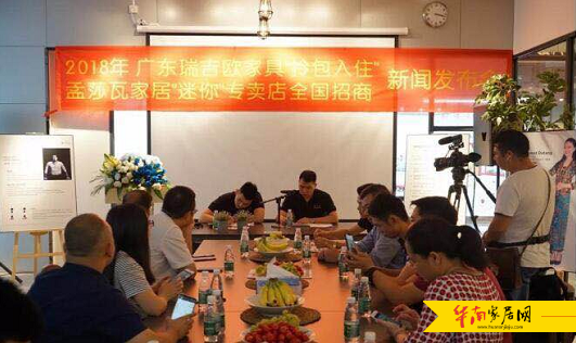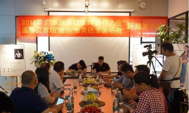 (华南家居网讯)2018年8月6日下午,广东瑞吉欧家具秋季“拎包入住”暨孟莎瓦品牌专卖店招商启动新闻发布会,在中国家具商贸之都---顺德乐从川页家具商场四楼举行,广东乐从家具协会秘书长杨志华、广东瑞吉欧家具有限公司董事长张龙东、总经理黄鸿辉、设计总监张添盛等主要领导及十余家新闻媒体单位代表出席了本次发布会。