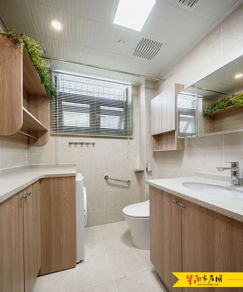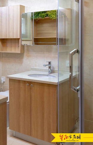 为搭配整体家居风格,箭牌卫浴选择了浅柚木色木材,为胡昇家的浴室定制了一整套浴室家居,有效利用浴室空间,解决了浴室的收纳问题。同时,在浴室安装了智能浴室镜,能听书、看电影、看新闻,还能听音乐,极大地提高了浴室的智能化水平。