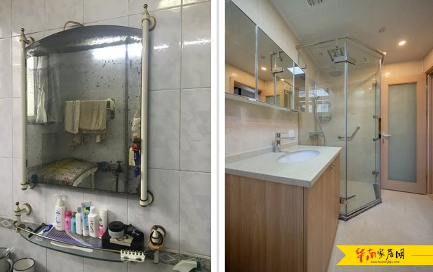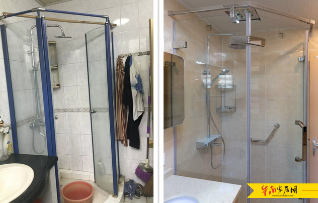改造前浴室与改造后箭牌定制空间