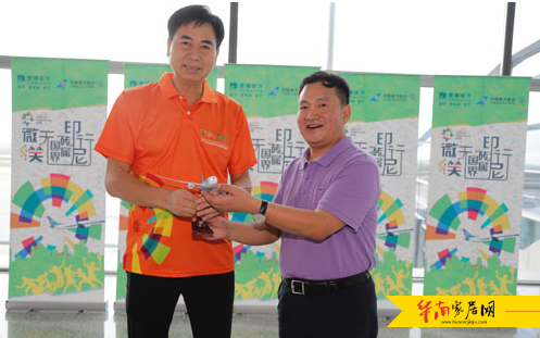 航班出发前,蒙娜丽莎集团联合南方航空举行了简短的送机仪式。乘客们身着醒目亮丽的定制服装,一早便在白云机场集结完毕,随后蒙娜丽莎集团副总裁邓啟棠和南方航空相关负责人互换了纪念品,航班正式起飞前往雅加达。
