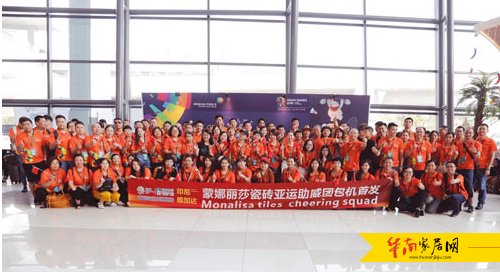 (华南家居网讯)2018年8月17日,蒙娜丽莎集团带领由消费者顾客、企业员工代表组成的百人“亚运助威团”,在广州白云机场包机出发印尼雅加达,观看第18届亚运会开幕式,为中国健儿加油助威。
