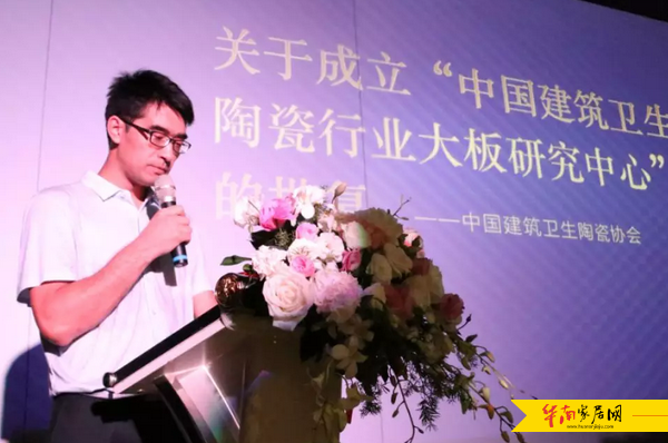 中国建筑卫生陶瓷协会生态建陶分会秘书长王玉文宣读《关于成立“中国建筑卫生陶瓷行业大板研究中心”的批复》,表示协会同意成立建陶行业大板研究中心,并希望新明珠按照协会的要求,做好示范基地的工作,引领和推动行业大板产品的高速发展。
