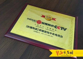 2018年6月25日,射雕陶瓷正式与中央电视台合作,成为央视展播品牌,并将于6月25日~7月1日在央视进行品牌广告宣传投放。射雕陶瓷品牌推广跨越升级,标志着射雕陶瓷在品牌宣传上再上新高度。