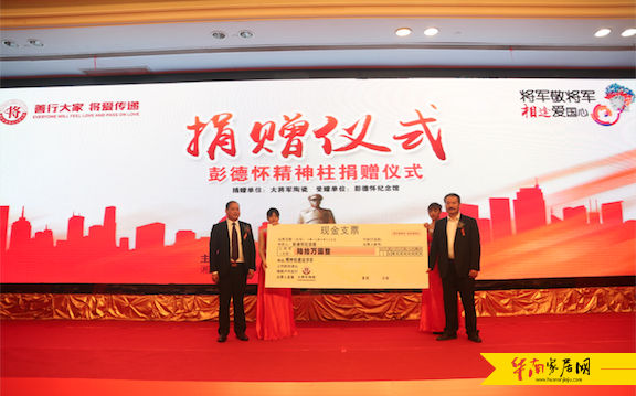 (华南家居装修网讯)临危不乱的气度,一呼百应的威望,铁血军魂是他留给中国人民的精神烙印与后人的宝贵财富。10月23日,由彭德怀纪念馆主办、大将军陶瓷承办的“将军敬将军,相逢爱国心”为主题的彭德怀精神柱捐赠仪式暨大将军爱心公益项目发布会,于湖南湘潭的华天国际大酒店拉开帷幕。