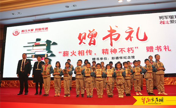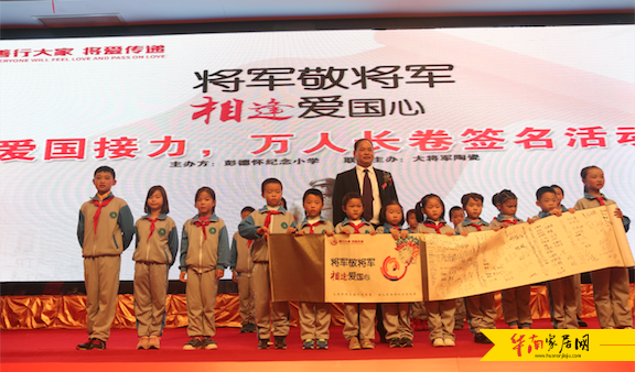 为献礼彭德怀精神宣讲中心建成,彭德怀希望小学的孩子们在万人签名长卷上留下了名字。万人长卷收集了上千名学生及社会爱心人士签名所书,寓意爱国接力,将爱传递,意义十分重大。彭德怀纪念馆代表回赠《彭德怀传》,希望孩子们在未来的日子里,认识、传承并发扬彭德怀精神。