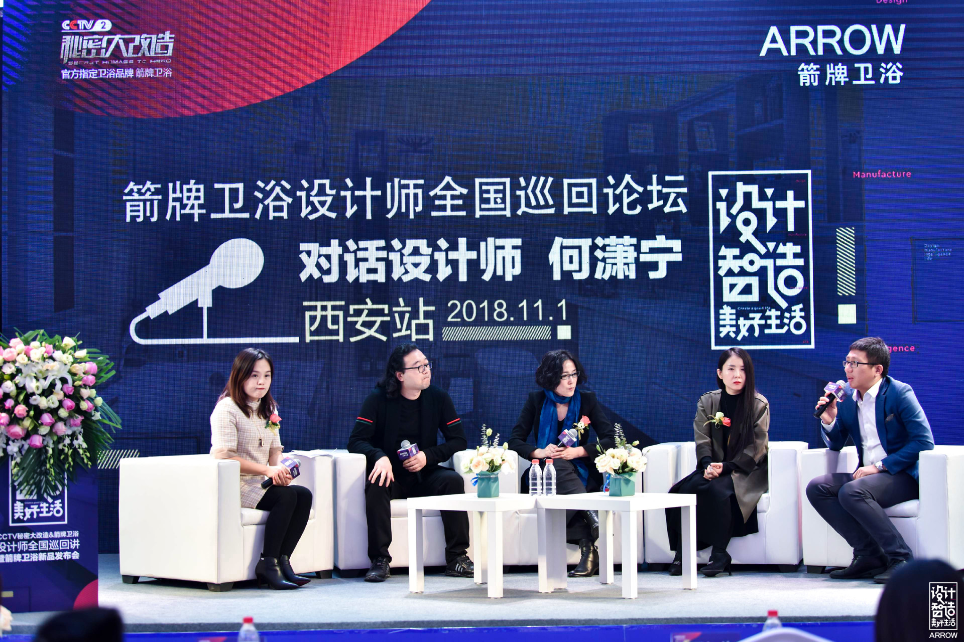 央视《秘密大改造》栏目设计师何潇宁、箭牌卫浴事业部总经理周智伟、西安市建筑装饰协会秘书长任宏敏、A+设计师联盟媒体主编李征、大明宫建材家居含光路店总经理徐春芳、西安中尊建材有限公司董事长王尊仁等领导以及一众优秀设计师,齐聚西安南大明宫,探讨产品与设计共创美好生活之道。