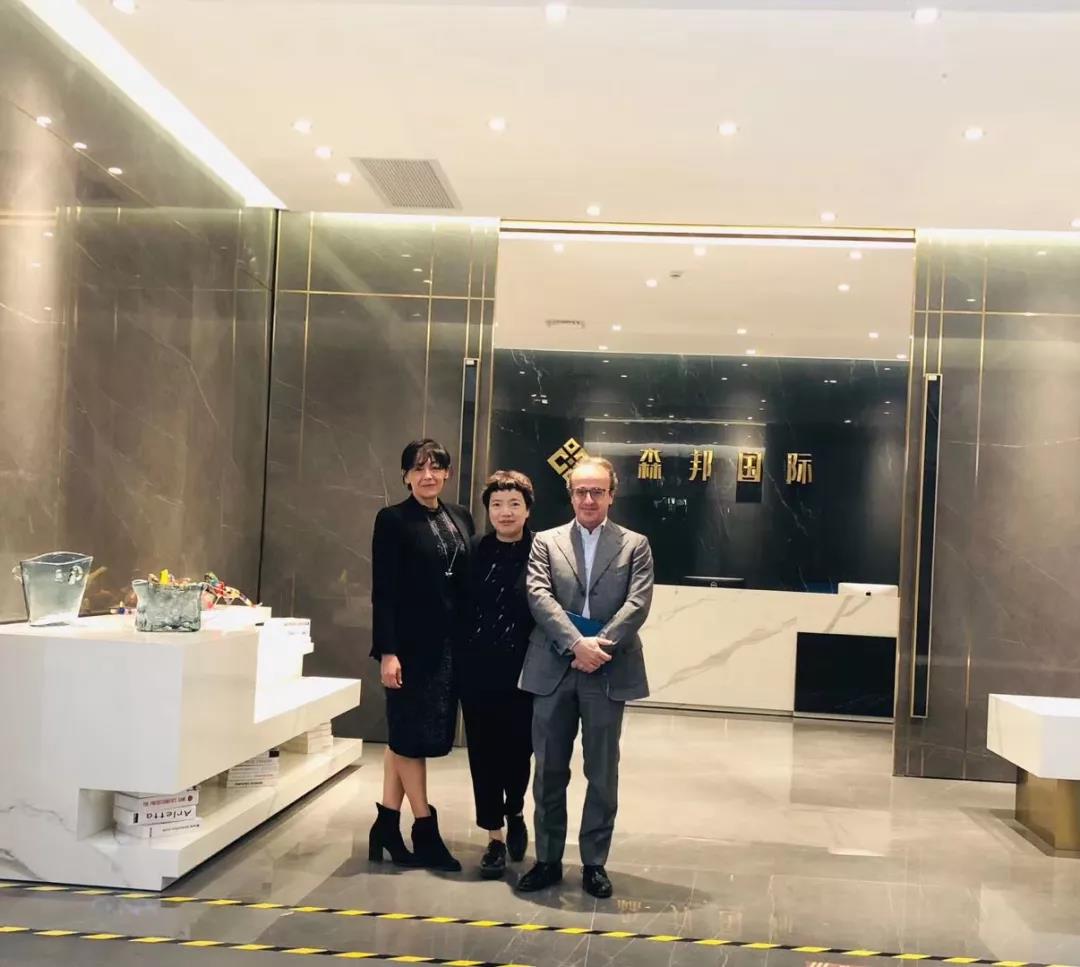 森邦国际李总带Tommaso先生和Marica女士参观了森邦国际馆,着重汇报和展示了Tonino Lamborghini和Petracer's瓷砖展区,分别从市场情况、客户消费理念及Tonino Lamborghini和Petracer's瓷砖在金华的销售情况等方面做了详细报告。诸葛副总则主要就下一步的市场开拓、销售计划及目标,目前销售的主要渠道及方式等内容,向总裁Marica和Tommaso先生做了介绍。