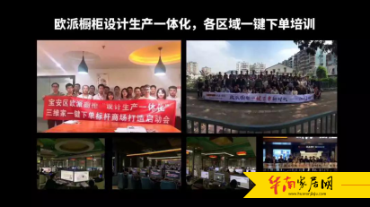重型生产定制企业中,以欧派为例,欧派橱柜生产后端,与三维家进行WCC的对接,现已打通前后端设计生产一体化,今年8月1日从广州分公司开始推进用三维家前端下单,11月初将优先华南区域进行使用,全国预计2018年底前上线使用。