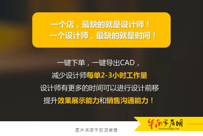 使用升级版三维家,再也不用花大量时间在CAD制图和下单上,每单足足为设计师省下6个小时的时间!从重复的工作中解放出来,作为设计师将有更多时间专注于效果展示与销售沟通能力的提升。
