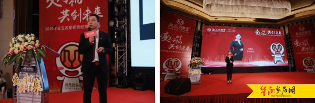 接着是优秀经销商代表的分享,他们分别是榆林的刘总和余杭的江总,两位分享了与金玉名家的合作历程,展示了双方多次精彩的配合,共同开发客户的案例,使得金玉名家“持续创新,携手共赢”的理念更加深入人心。