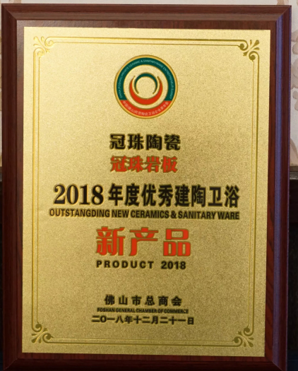 在会议上,冠珠陶瓷凭借强大的品牌实力,荣获“2018年度十大建陶风云企业”、“优秀大板瓷砖品牌”,冠珠岩板喜获“2018年度优秀建陶卫浴新产品”,共三大奖项。