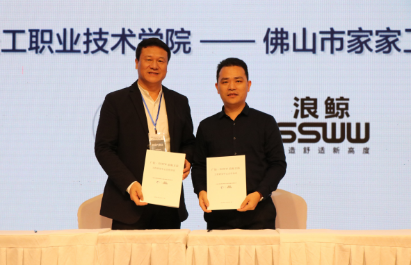 在展会上,浪鲸卫浴与广东轻工职业技术学院签订了合作协议。浪鲸卫浴品牌中心总监林学舟和广东轻工职业技术学院艺术设计学院院长桂元龙签署了合作协议,双方将共同研发更能满足消费者多层面需求的卫浴产品,推动工学商一体化项目制课程成果的落地和市场化,进一步提高产品研发创新能力。本次校企合作也将为浪鲸卫浴的产品设计,研发专业人才打造提供重要支撑。