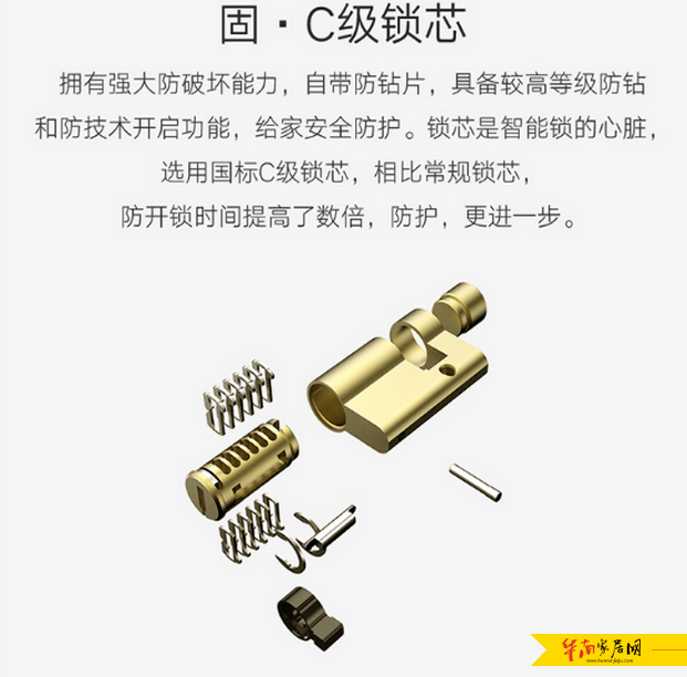 在安全方面,华为智选生态产品——汇泰龙智能指纹锁“卯足动力”,硬件方面配备市面上最高等级的C级锁芯,并采用“真插芯”结构和防猫眼开锁设计,锁芯自带防钻片,具备更高等级的防钻和防技术开启能力;锁芯贯穿固定在锁体上,即使小偷采取暴力手段拆除指纹锁的前面板也无法直接开锁。此外,智能指纹锁具备严格的电机控制电路,可防止“小黑盒”等强烈的电磁干扰导致门锁状态混乱的情况。