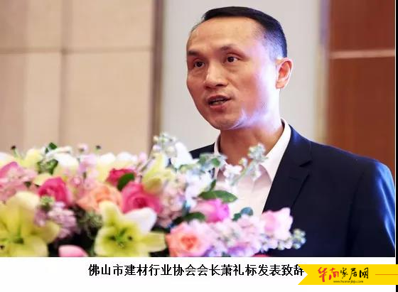 佛山市建材行业协会会长(蒙娜丽莎总裁)萧礼标先生首先向大会做致辞,他用大量精辟数字总结分析了2018年建材行业的经济运行情况。对佛山市建材协会2018年取得的成绩高度肯定,他赞誉协会的服务落地有声,行业凝聚力不断提升,佛山大建材平台建设影响力越来越大,期望更多企业投入到“佛山大建材”建设之中。