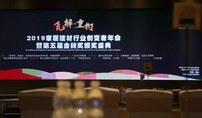 (华南家居网讯)2019年1月7日,“瓦解·重构”2019家居建材行业创变者年会暨第五届金砖奖颁奖盛典,在佛山顺德联塑万怡酒店举行。作为本年度“连接设计与产业”的第一场盛会,金砖奖现场高朋满座、星光璀璨,400余名陶界人士出席了本次盛会。