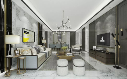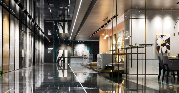 在具有动态美的空间里,潮流大板瓷砖透析出轻奢感。
