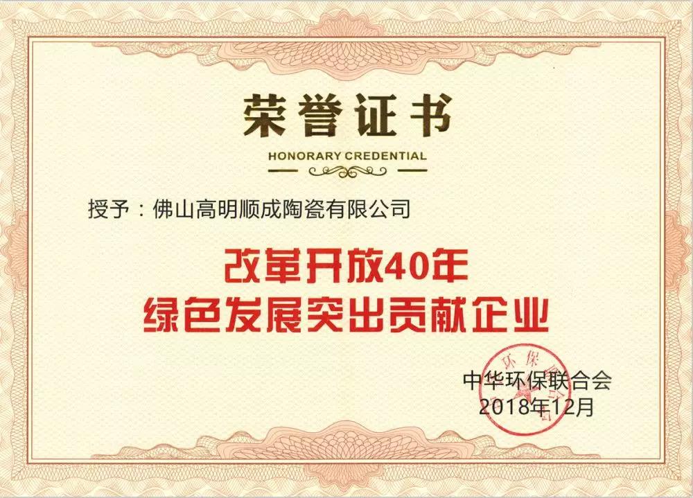 顺成陶瓷集团,改革开放40年绿色发展突出贡献企业!