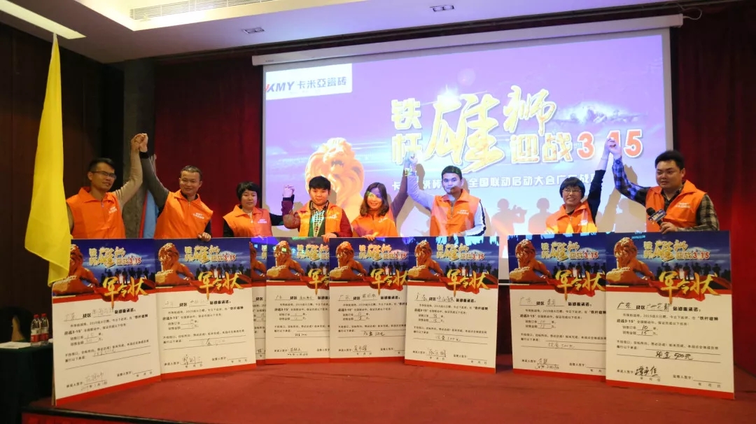 卡米亚瓷砖广东战区终端销售精英签署军令状并进行团队展示