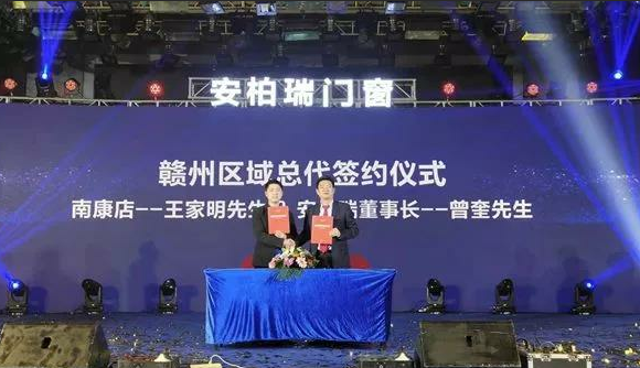 进入到安柏瑞2019年度内区域总代理战略签约仪式现场,董事长曾奎先生分别于赣州区域总代理南康店王总,宜春吉安上高店王总签订战略合作协议书,崭新开启安柏瑞门窗2.0时代。
