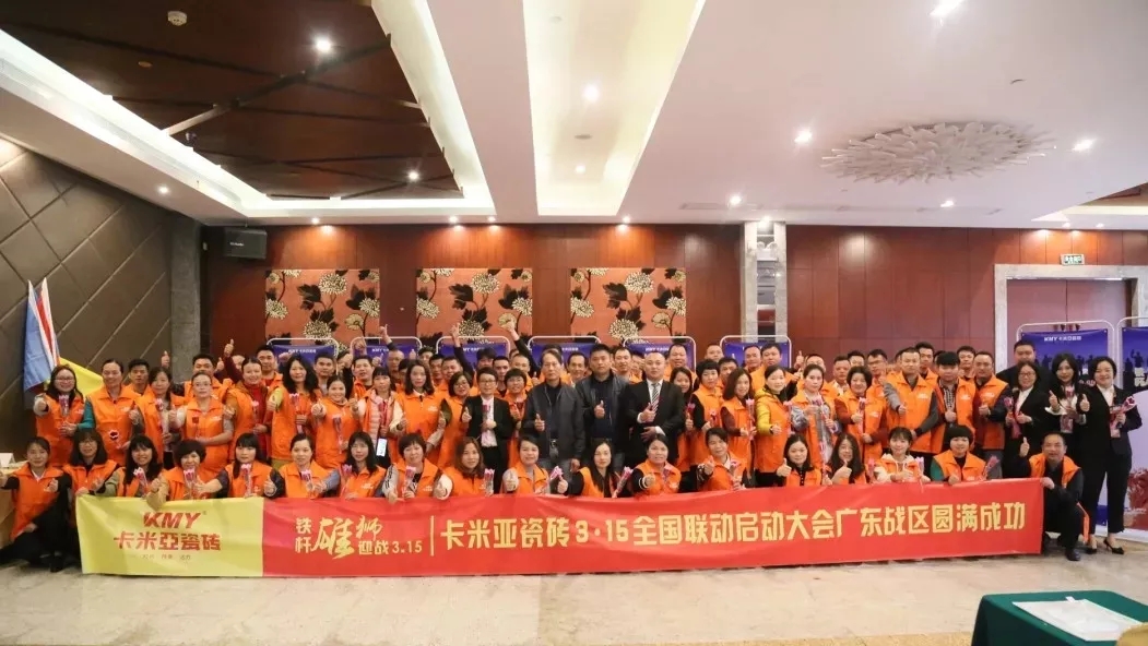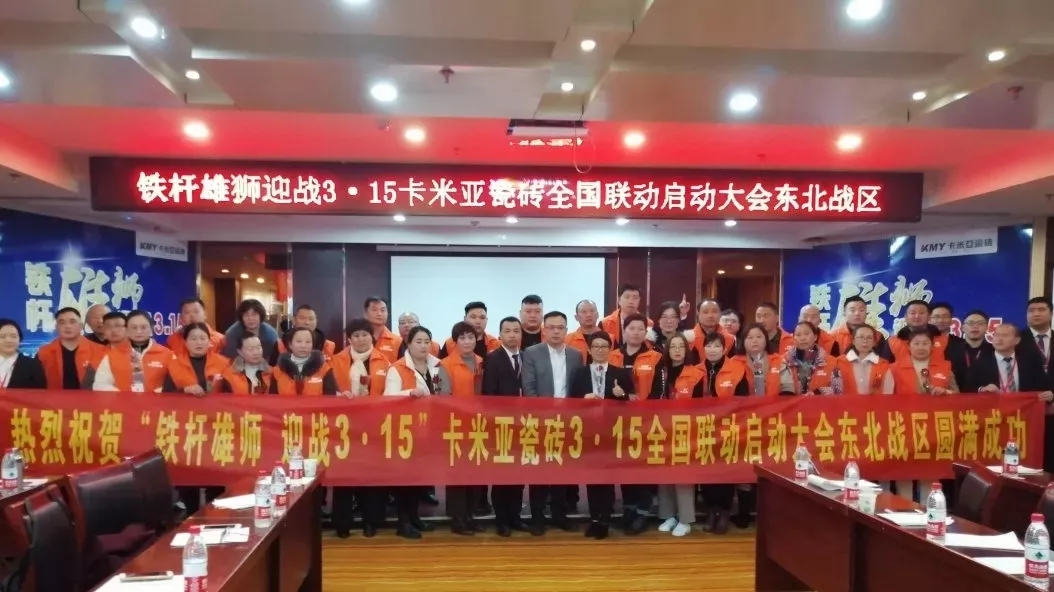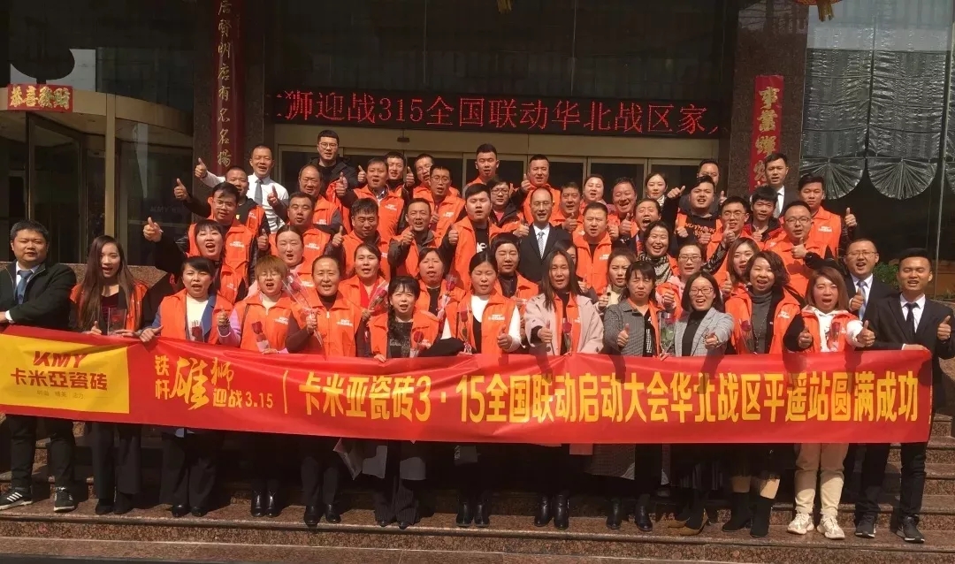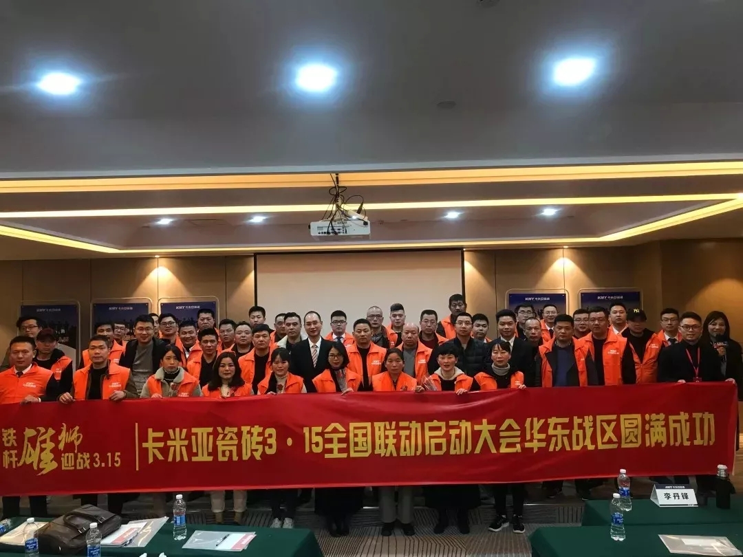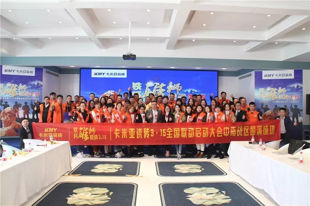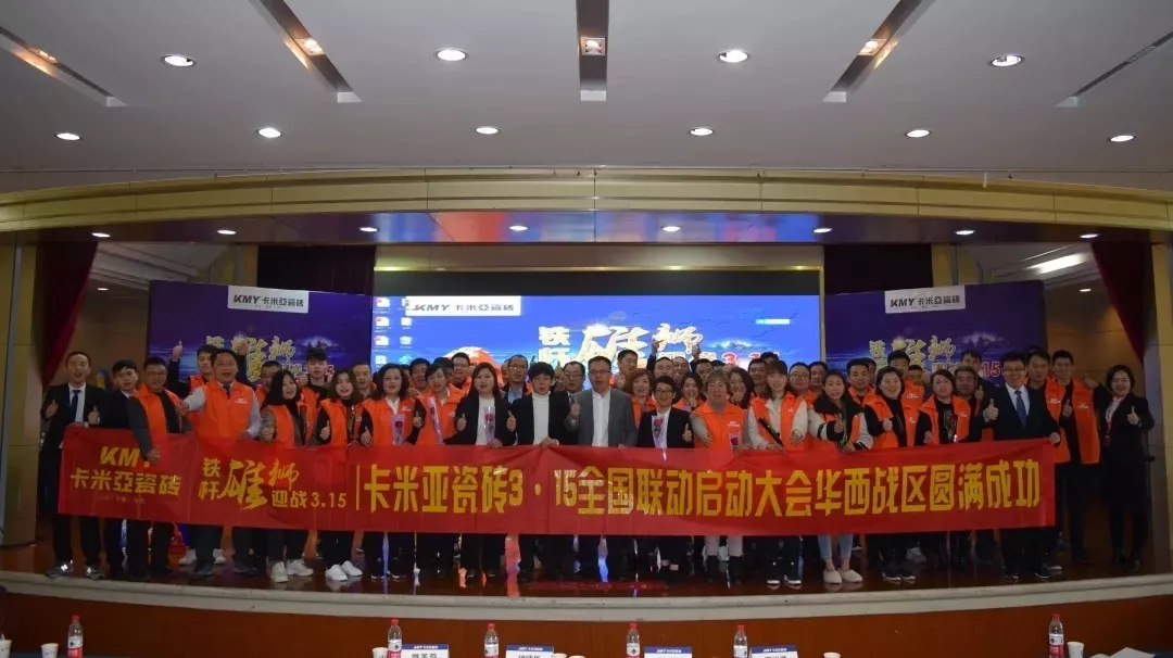 (华南家居网讯)一年之计在于春,大到一个国家、一个企业,小到一个家庭、每个人;做好一年的规划和备战显得尤为重要,没有播种就不会有收获。卡米亚瓷砖自2月17日总部全国联动总动员召开以后,营销团队分赴各地,开展了一场轰轰烈烈的终端全面进攻战!总部1场动员会、终端战区6场大型动员会,52个销区落地执行,100%覆盖全部网点,参会经销商1000人左右。